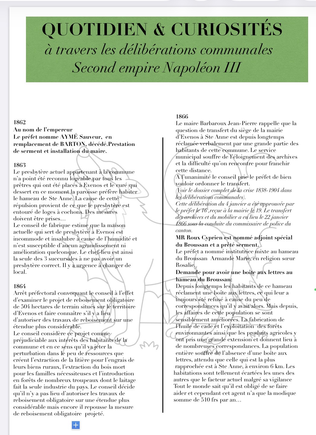 HISTOIRE D’EVENOS PAR THÉMATIQUE